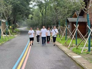 整個團建,設立了上午的竹海打卡和下午的競技對決。竹海設立了7處打卡點,每位組長手握地圖,領導組員,不僅是爭奪個人的最快打卡,更重要的是完成每個打卡點的小組集體照上傳才算成功。期間,也有運動達人最快的完成了最多個人打卡,可打卡點卻搞錯了,導致整個小組因此失分,直接中了籌備組設置的”打卡小陷井“。進程過半,體質虛弱的女同事,因為消耗過大臉色發白,但為了不影響小組成績,稍加休息就繼續登山……